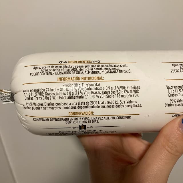 Ingredientes e info nutricional en la segunda imagen