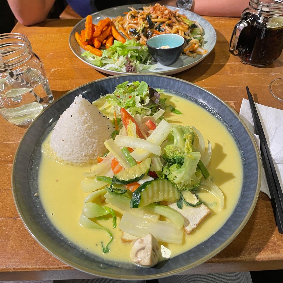 Sehr lecker die Mango-Coco Sauce! Das einzige waren die Gemüse ein bisschen row noch (das könnte aber auch gefallen)