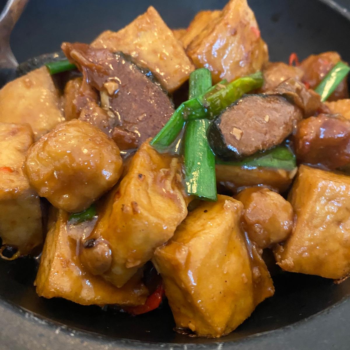 Experience a tantalizing burst of umami flavors with this Vegan Hot Pot Tofu featuring Salted Fish. In this innovative fusion, tender tofu slices mingle with plant-based salted fish in a simmering broth infused with aromatic herbs. The result is a dish that harmoniously marries tradition and plant-based cuisine, offering a savory and satisfying dining experience that's as rich in flavor as it is in cultural inspiration.