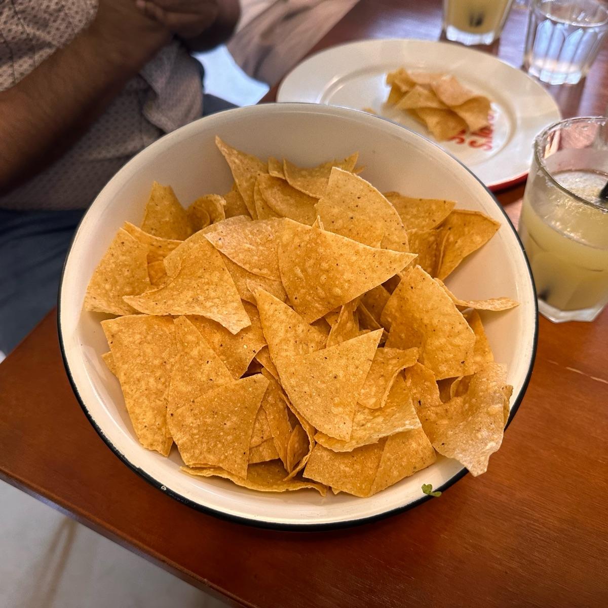 This also came with a side of #salsa but I am sad to report that it never made it to my side of the table 😔 Fs in the chat, boys 💬 I had to dip my #tortillachips in #guacamole, which is basically spinach banana paste 👎🥑 They were great, though! Plus I didn’t even pay for it 😙 Team outing ftw!!