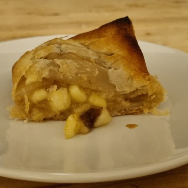 I found this at Lidl a while back and I thought it was good. The inside taste more or less like Mcdonald's apple pie. The outside reminded me of a Danish, with the puff pastry.
