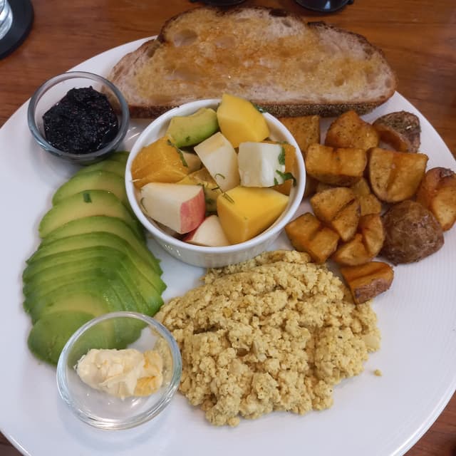 Delicious and filling breakfast! I really enjoyed how many different things were on the plate and I liked each thing, except the tofu scramble was quite dry. Honestly I've been let down a bit by tofu scrambles in Chiang Mai a couple times now. But still good dish and worth trying :)