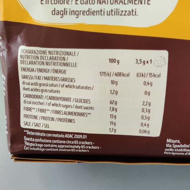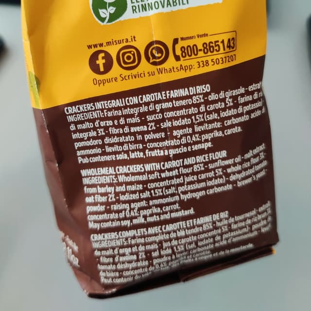 The crackers con carota e riso integrale are a delicious and wholesome snack made with whole wheat and carrot flavor. The crispy texture and savory taste of these crackers are enhanced by the distinct flavor of carrot and the zesty taste of paprika. They are perfect for a quick meal breaker or as a satisfying snack. Many customers enjoy them with their favorite dip or cheese, while others appreciate the balance of flavors and textures in each bite. Overall, these crackers are a tasty and healthy option for those looking for a satisfying snack.