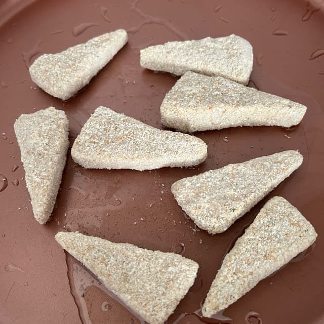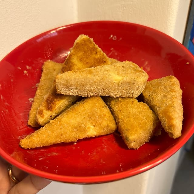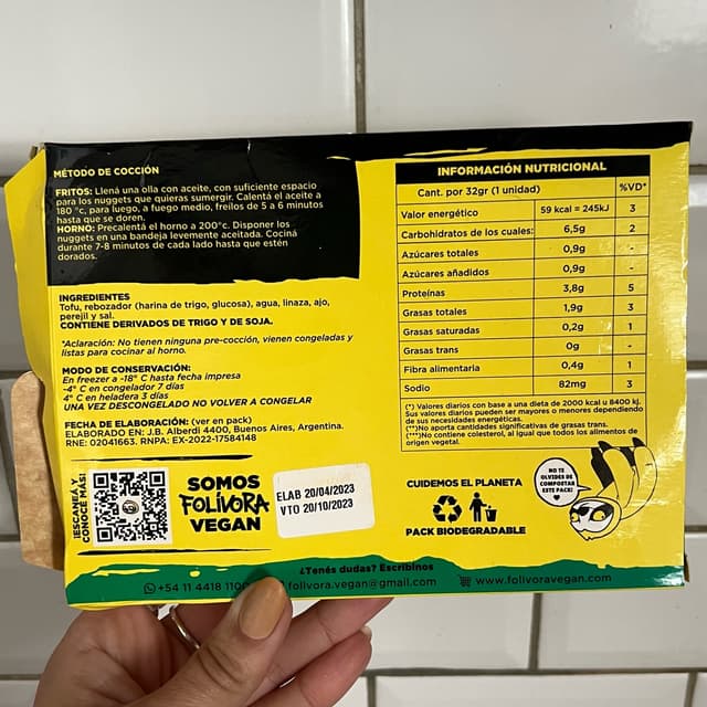 Nuggets de tofu, me encanta la conciencia por el ambiente de estes productos. El sabor no esta mal, pero básicamente es tofu empanado, podría tener algún condimento mejor.