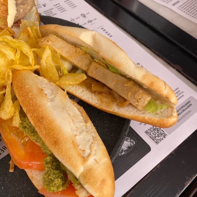 Paninetto con pollo heura. Molto buono e abbastanza economico.Attenzione perché quello con il pesto ha il Parmigiano quindi non è vegano