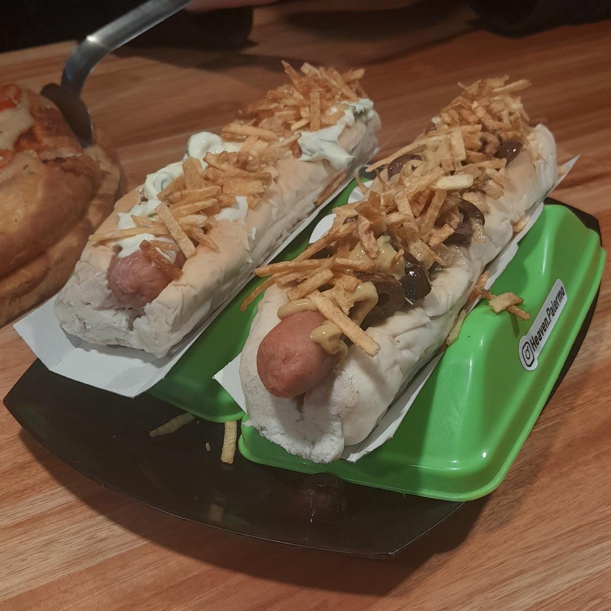 Superpanchos a base de plantas, podés elegir los toppings que quieras, también le podés agregar papitas o nachos arriba. Me gustó, hay descuento en efectivo #plantbased #aptovegan #vegan #veganismo #abillion #donacion #pancho