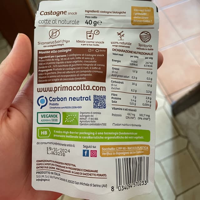 Cercavo uno snack gustoso e sano e ho deciso di prendere queste castagne cotte al vapore, italiane e biologiche.
