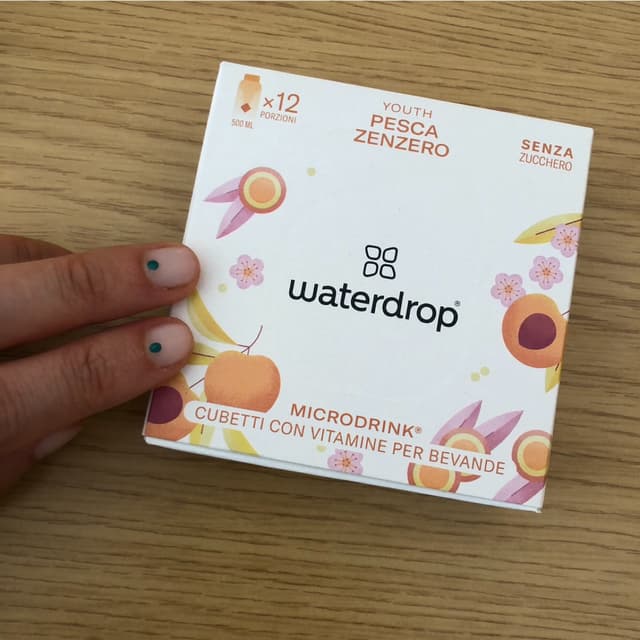 Pasticchine per aromatizzare l'acqua al gusto pesca, zenzero e ginseng, senza zucchero, con vitamina C, niacina e biotina. Rendono l'acqua molto gradevole e rinfrescante, soprattutto d'estate. Dolcificato leggermente con stevia.