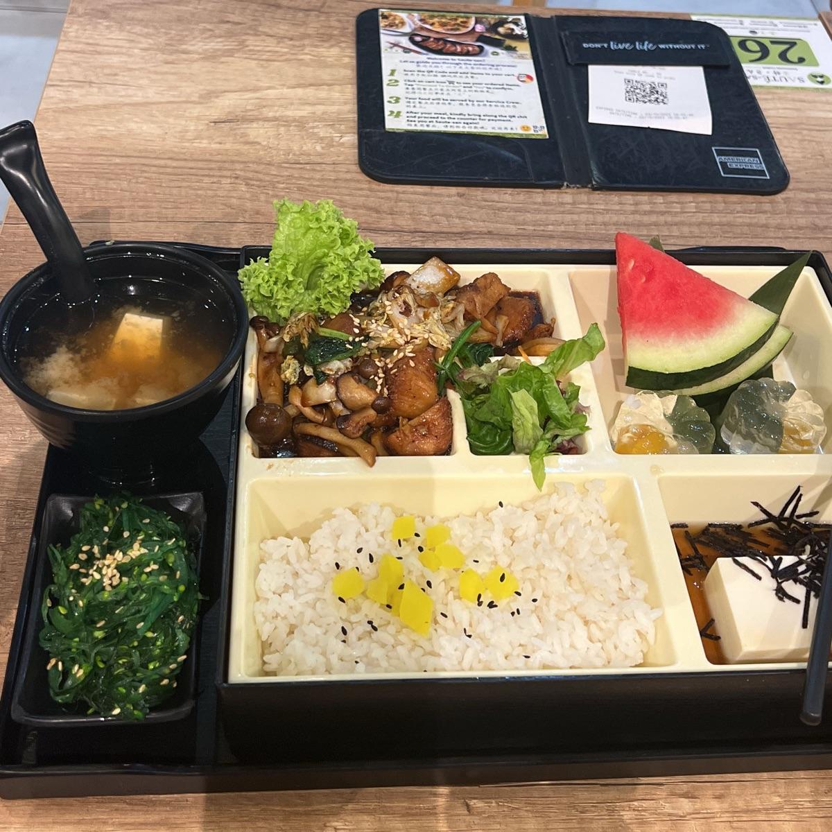 🍱 The Teriyaki Lion Mane Assorted Shroom Rice Set with Crispy Abalone and Miso Soup is a well-balanced meal that includes an appetizer, soup, main dish, vegetables, and dessert. The dish features an assorted variety of mushrooms, including lion's mane, cooked with a savory teriyaki sauce that complements the flavors perfectly. The crispy abalone adds a delightful texture to the dish, while the miso soup provides a touch of sweetness. Overall, this dish is a satisfying and delicious blend of flavors and textures.