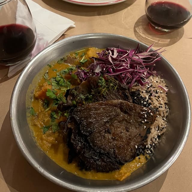Soy muy fan de gordo vegano, pero este plato no fue la gran cosa. Demasiado arroz y pocas girgolas