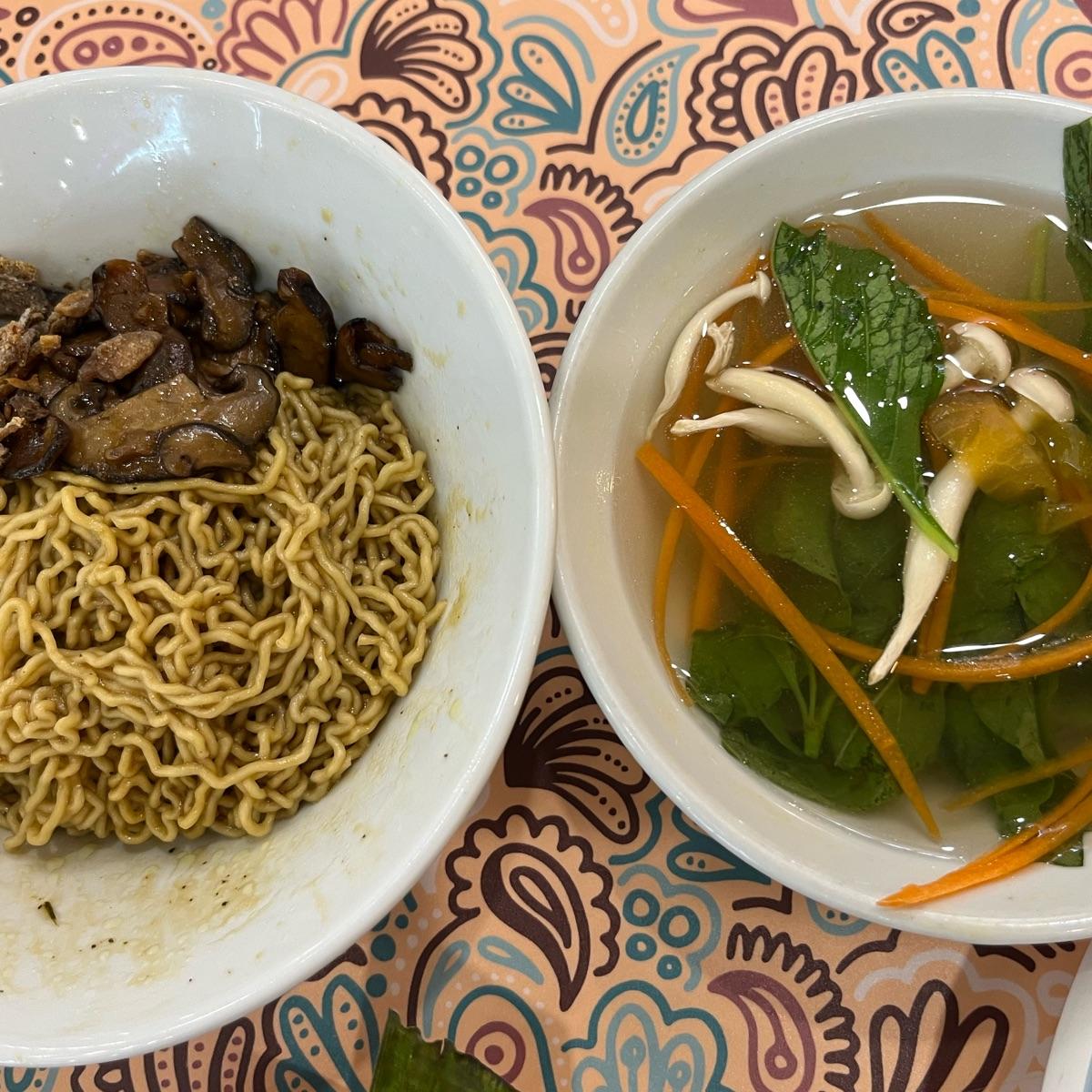 The noodles were nice and springy, seasoned lightly with soy sauce and topped with mushrooms. The soup was light and filled with plenty of vegetables. Real comfy experience tucking into this. #halal #halal-friendly #noodles