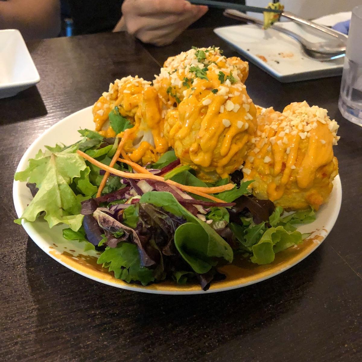 With our dear #vegan compatriots @misskittysfantadisco @waterlily gathered for @dafnelately’s celebration, this was a unanimously voted pick 🤪 Even without the side of refreshing greens, this #cheesy affair wasn’t actually that heavy! 😝 I do wish the cauliflower bites had a crispy crust but the more health-conscious nature of @afterglow had to go soft 😗 It was still a huge hit though! It had just the right amount of light saltiness to let the #cashewcheese shine 🤩 It felt close to those more nacho cheese types to give it that punch of flavour!