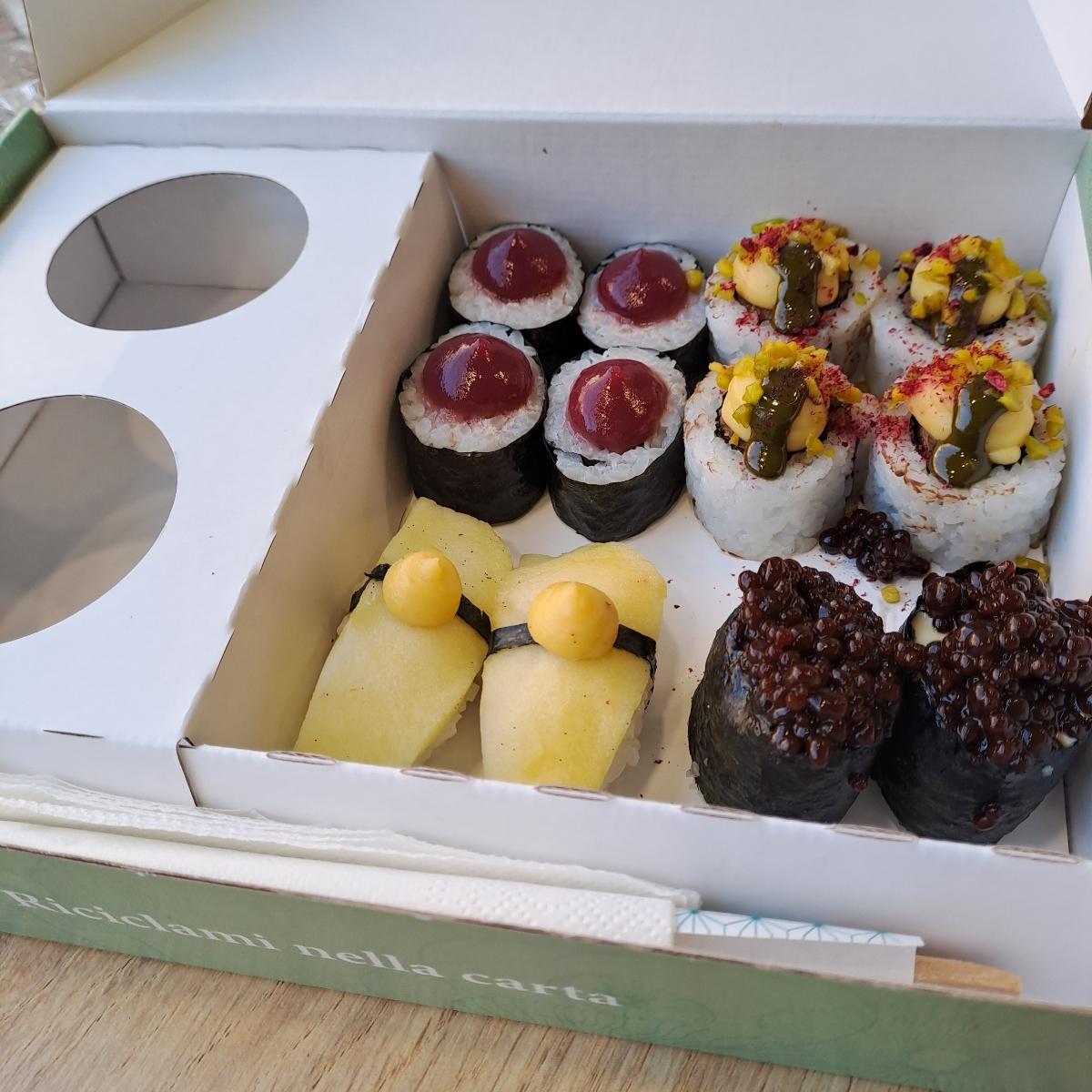 Ottima versione del sushi in chiave veg e dolce. Idea originalissima, anche se a parte quello al cioccolato non mi hanno fatto impazzire molto