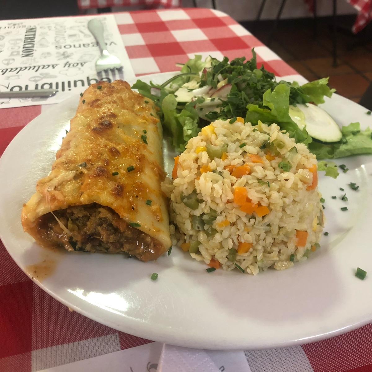 Delicious. Like a kind of burrito with vegan meat and other ingredients.
