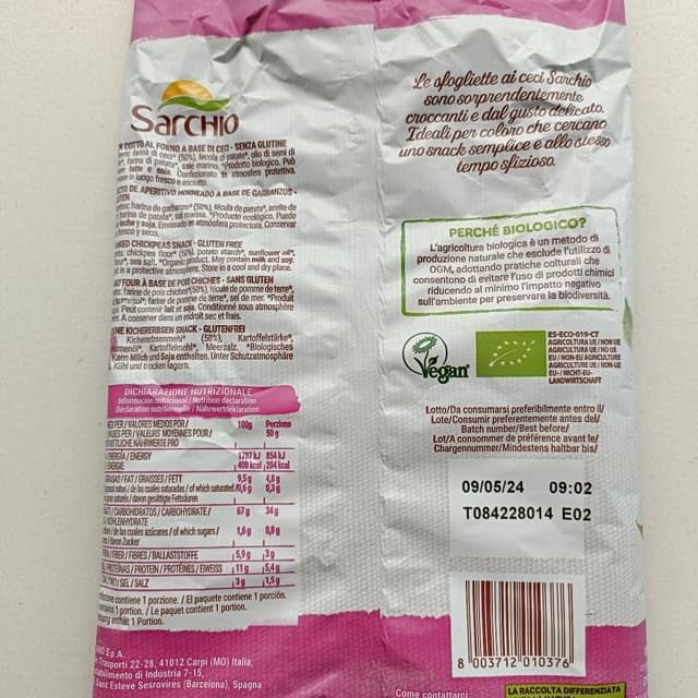 Buona alternativa più leggera alle classiche patatine,non sono fritte e sono senza glutine. Molto simili alle sfogliette della Probios