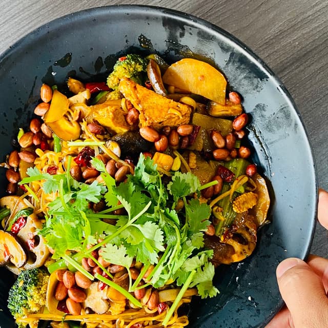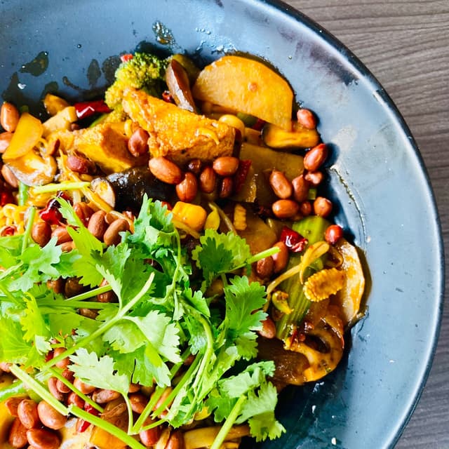 If you like Sichuan food you’ll love this incredible hot pot of veggies, noodles and tofu all brought together in a fire 🔥 pit of spice and oil that’ll have the back of your neck drenched and your mouth numb and on fire.