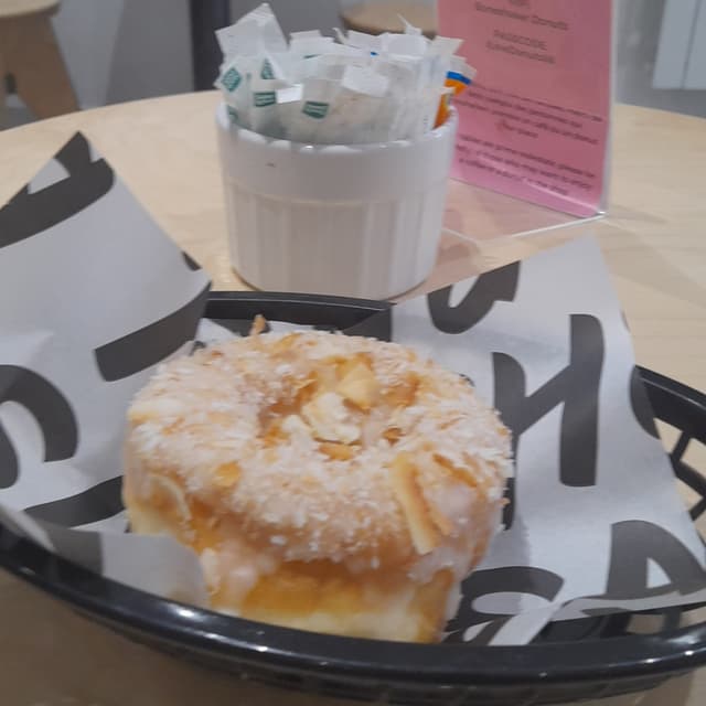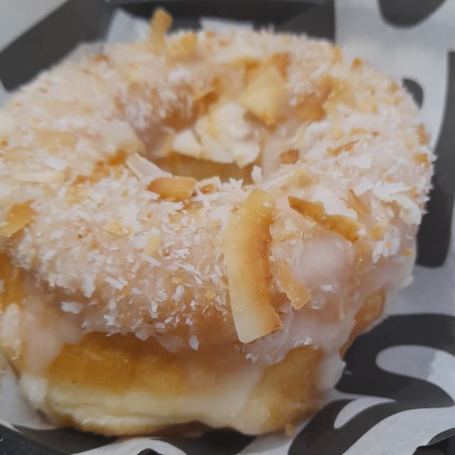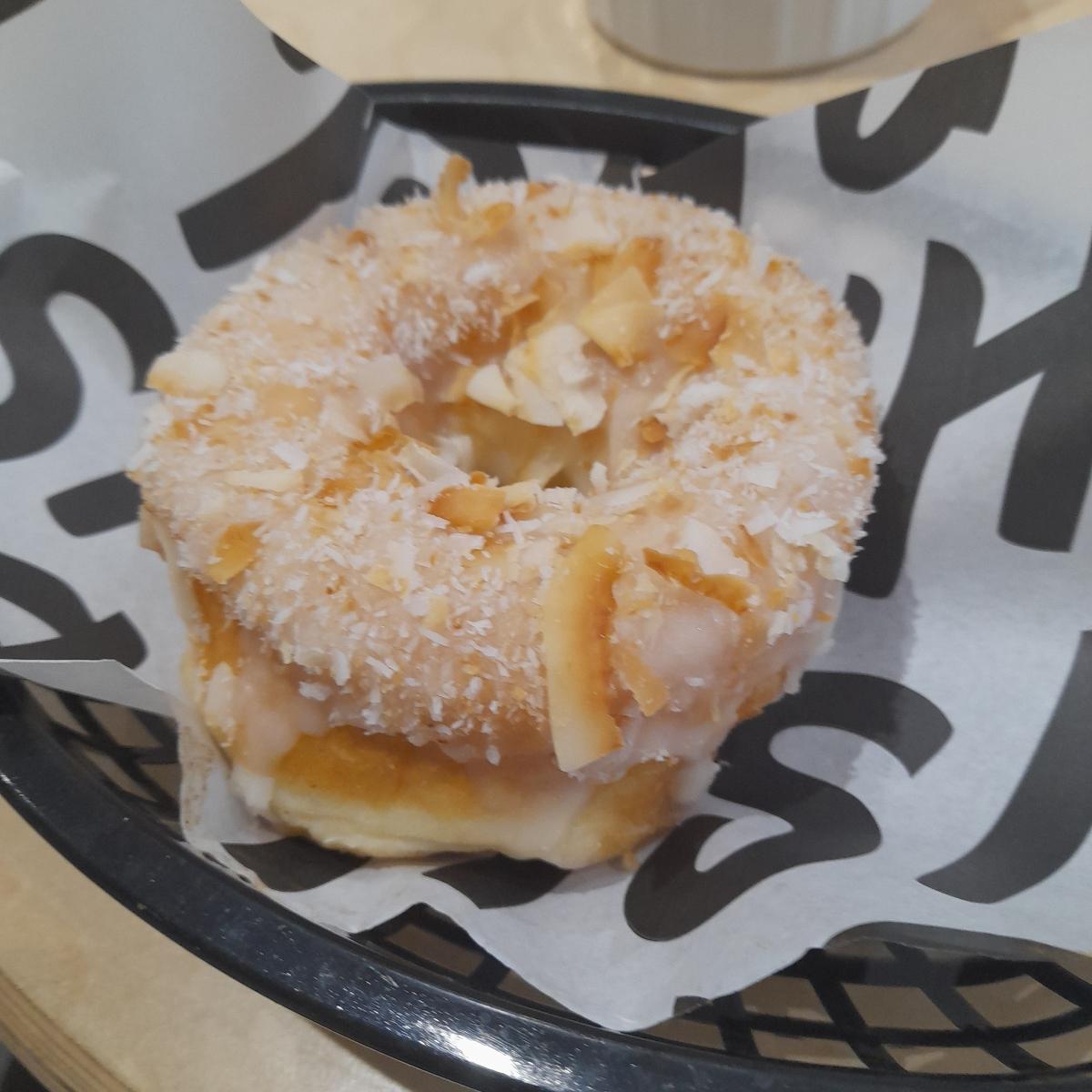 Loved the lemon curd filling as it tasted like a lemon tard inside a bigger doughnut, the coconut flakes not that much. Was fluffy and yum, but eating it was a mess, the filling was falling apart and I felt better after finishing the whole thing. Had it with an Americano ( #birdless191 ).