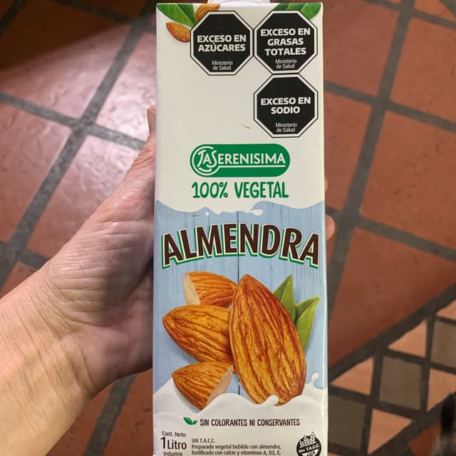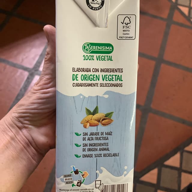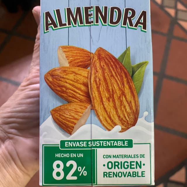 Preparado vegetal bebible con almendras fortificado con calcio y vitaminas.