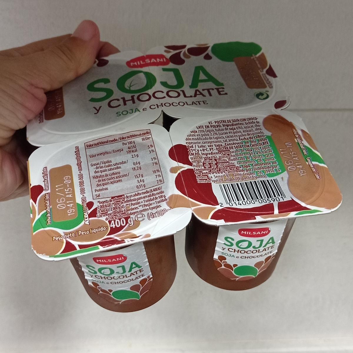 Postre de soja con chocolate. Viene en un pack de cuatro yogures. Muy ricos. Ideal para los amantes del chocolate.