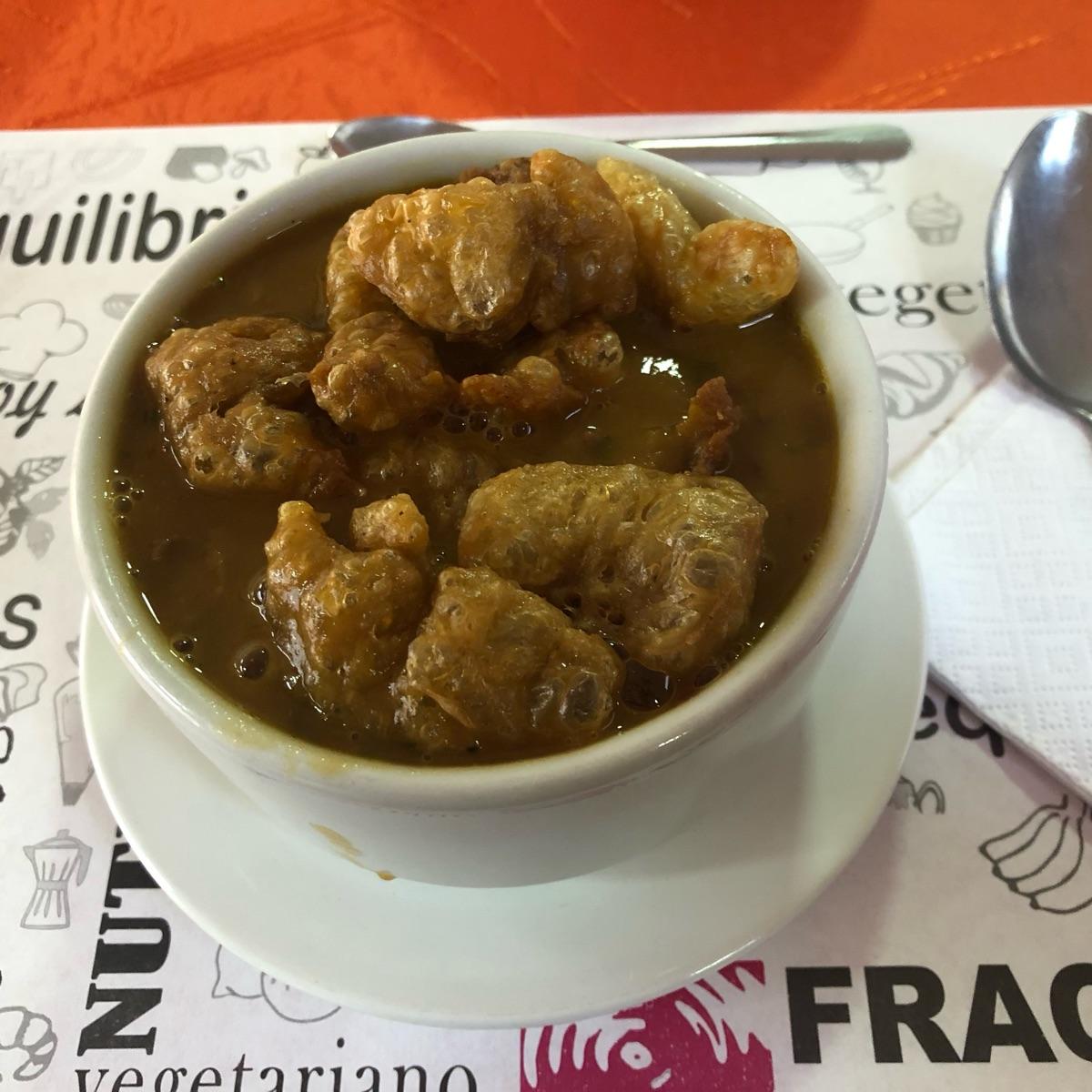 "Bandeja Paisa" is a traditional Colombian dish that usually comes with meat and "chicharrón" (pork grinds).