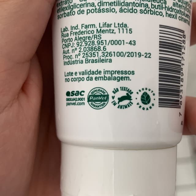 Vegano, sem testes em animais! Muito bom! Por conta do óleo de melaleuca tem um cheirinho fresco delicioso! É uma esfoliação suave, e que deixa a pele bem macia. Eu amei! Sem falar que paguei cerca de 15 reais nele!