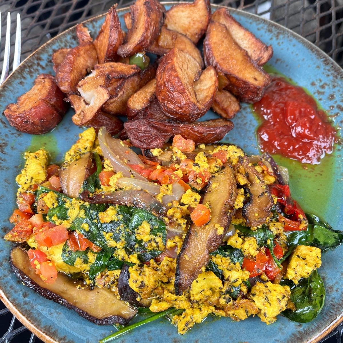 Pretty good tofu scramble! Seasoned well, but just a tad bit oily. I’d get it again while getting brunch with friends 🌞