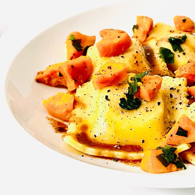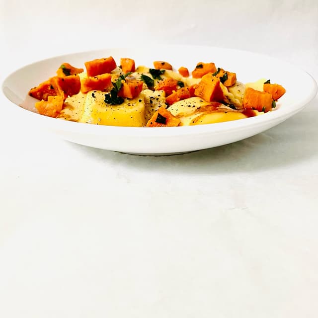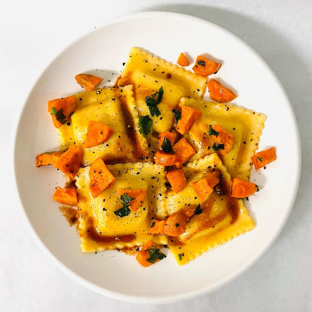 Chock full of sweet-n-savory butternut squash & creamy almond milk ricotta, Kite Hill’s butternut squash ravioli is Mama Mia! Chef’s kiss delish! Absolute perfection.