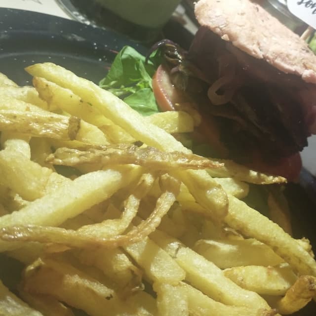 Bueno, Haroldo desde siempre ha ofrecido opciones veganas. Tiene una hamburguesa que podés armar como quieras (PERO) el medallón a mi gusto es uno de los peores de la city, así que conociendo la movida les pedí cambiar el medallón por un ingrediente extra de los que hay para elegir y fue una de los mejores sanguches que me comí ahí 🍔🥪🍹