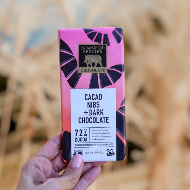 I always love the beautiful packaging of Endangered Species Chocolate They make the perfect little gifts as well. These bars are a good chocolate option as they help prevent destruction of forests as well as actually help the communities who grow and produce cocao. #Chocolate is a very brutal industry that's not only horrible for the environment but is largely based on slave labor. It's super important to choose brands that manufacture #ethicallysourced chocolate. This is one of their #vegan bars. I love that they keep expanding their vegan line with many oatmilk options. This dark chocolate bar is 72% cocoa and has little pieces of coca nibs for an extra kick and a good source of antioxidants! I purchased this bar for a great price at Fresg Thyme for $1.50.