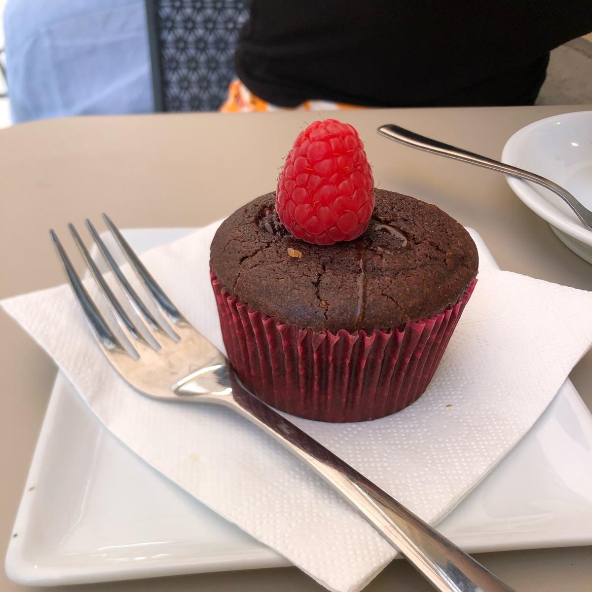 la mia amicca giulia aka @giuliettaveg 🪷🪷🪷 aveva preso un the e questo muffin al cioccolato e lampone 🧁🍓🍒 tanto buono quanto bello! 🎀🍪🍓🍩🥐🍰