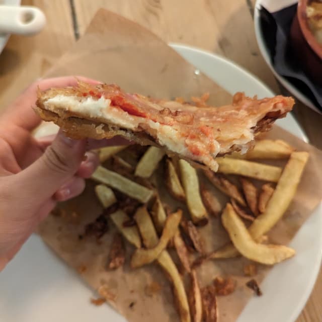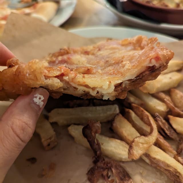Ish very yummy but i wish i got da normal pizza instead cause it was bigger haha, this was just a beeg slice and some chibs. :3 🥔 it was super oily and felt so unhealthy lmao. I'd defos get something healthier next time because i wanna perform good in sport haha.