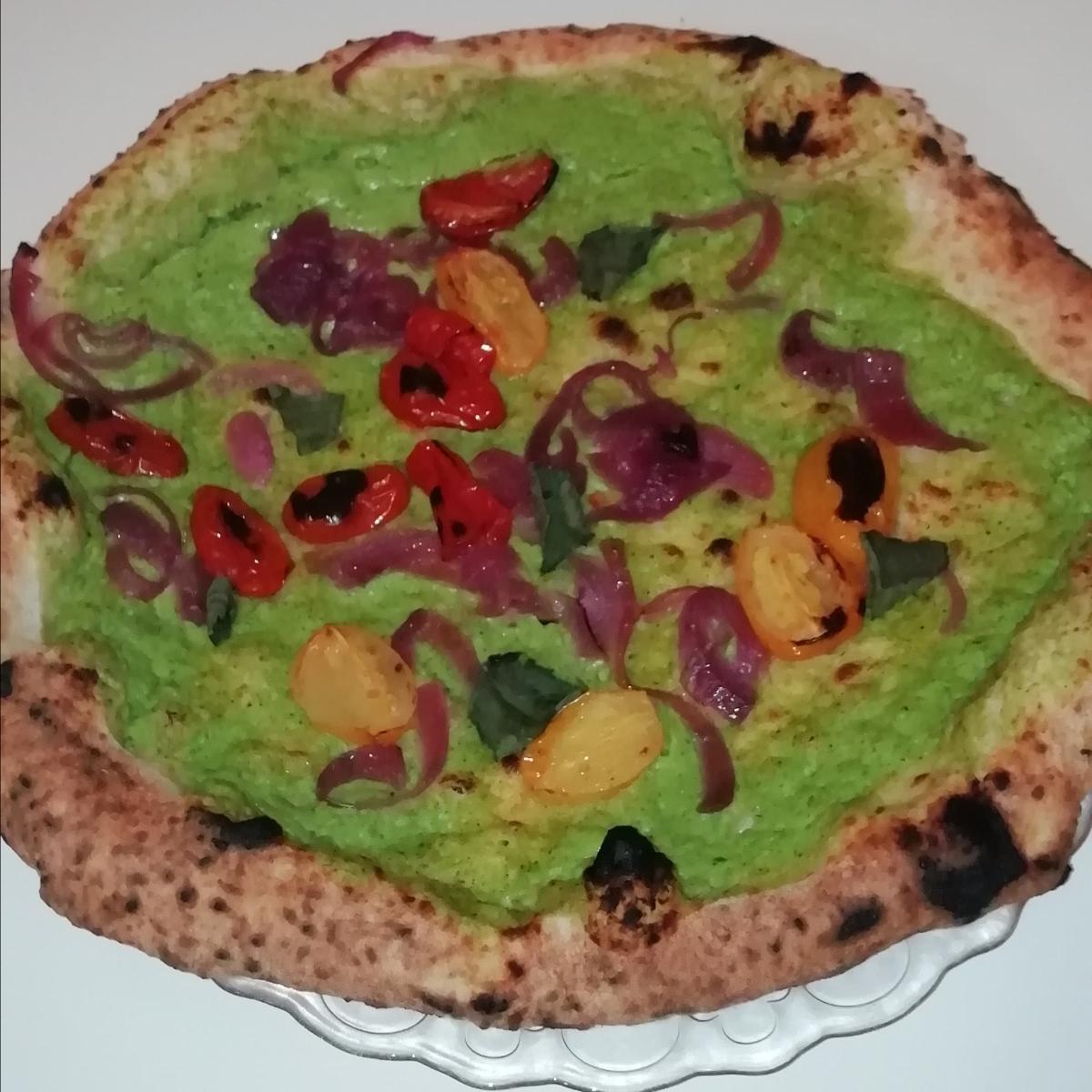 Pizza vegana del mese. Ho mandato mio marito a prenderla da asporto e mi sono dimenticata di chiedergli di informarsi sugli ingredienti.