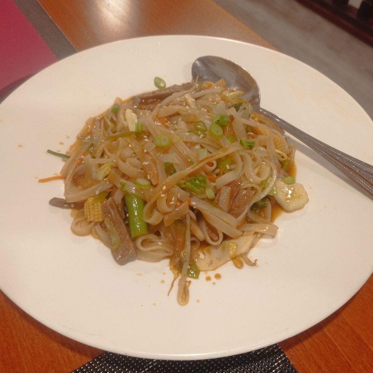 Está rico, aunque con un toque dulce. El sitio no es vegano pero tiene un apartado de la carta muy amplio con platos veganos. Prácticamente los reproduce todos a versión vegana. Recomendable. El plan bao no es vegano, pero se puede pedir sin huevo y te lo hacen. Tarda un poco pero vale la pena.