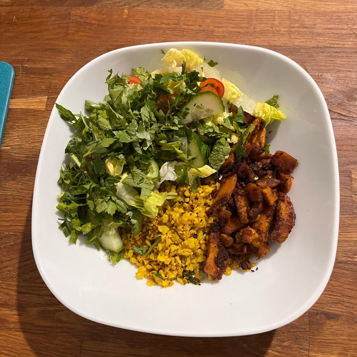 Super greasy, weird texture, decently seasoned; pretty spot on if you’re looking for chicken kebab meat. Higher calories than the other vivera kebab meats, lower protein and not as good. Got it in Morrisons vegan meat 4 for £10 cause they didn’t have any ready-to-eat fake chicken so on its own not a great price but it’s a good deal.