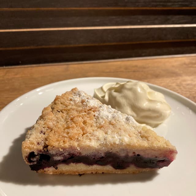 This blueberry pie from Expresso House was very decent, although it didn’t quite taste like the homemade berry pie you might be craving. The blueberry filling tasted nice and had quite a thick texture. The crumble on the top was not the best as it had a bit of a greasy taste in my opinion. Still happy to have this option all around town but it could probably be improved and is a bit pricey (42dkk).