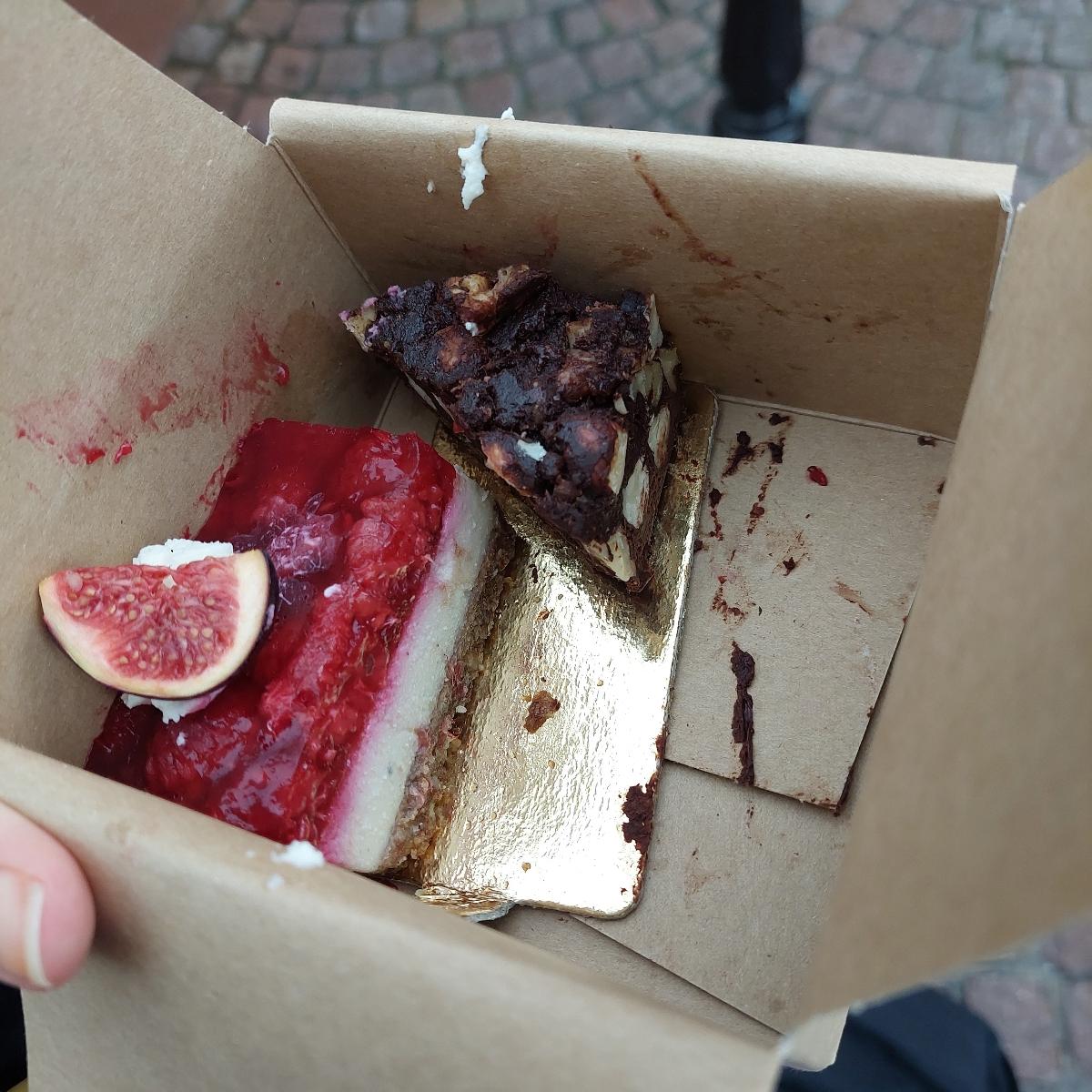 Wish I would have taken a picture in the store as the vegan desserts looked so beautiful. I don't even have that big of a sweet tooth, but I couldn't resist trying the vegan brownie. It wasn't really a brownie, but good nonetheless. The brownie is quite compact with big pieces of hazelnut. #sweettooth #chocoholic #yummy