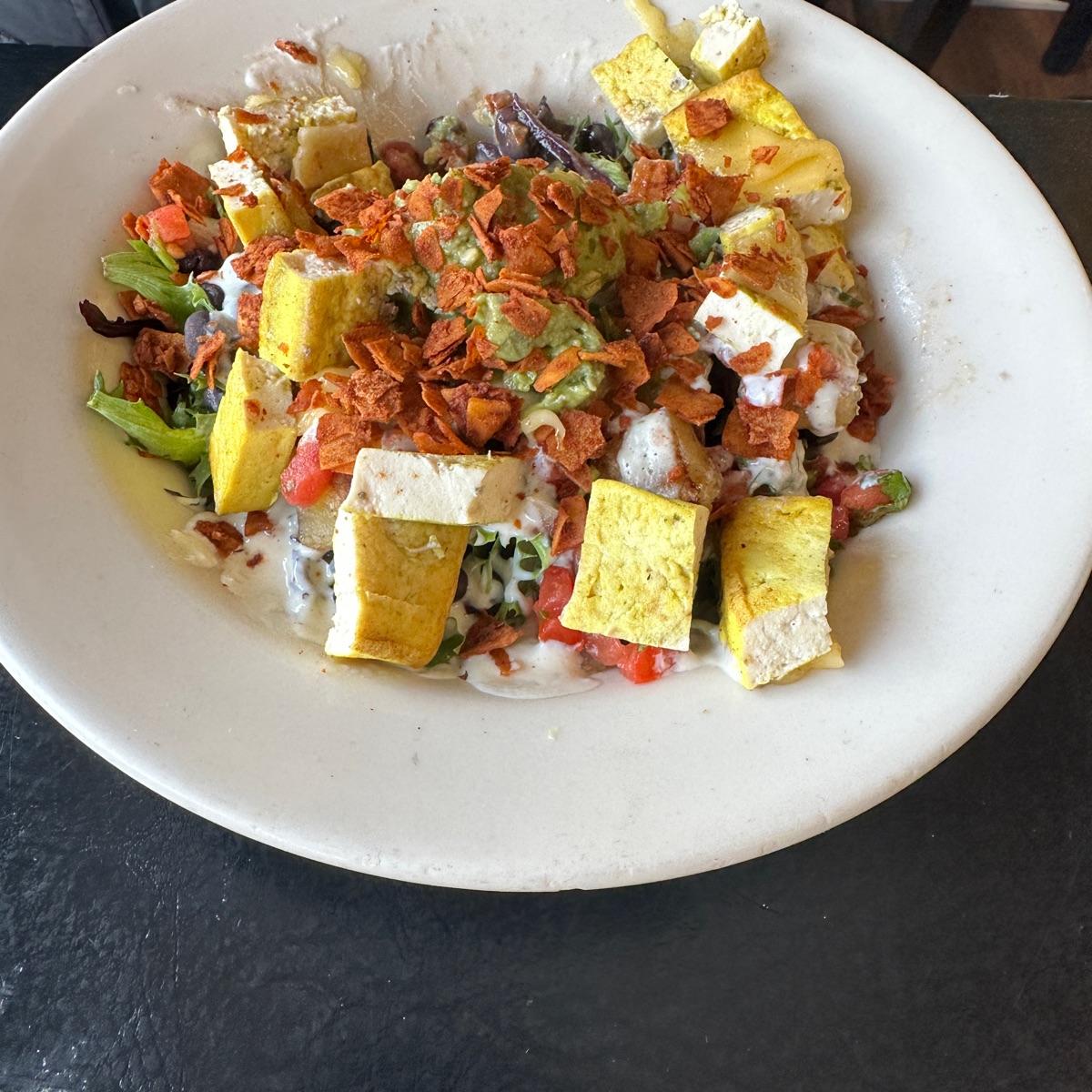 The coconut bacun bits were delish. Do not skip the sour cream. Potatoes and black beans with salsa and guac were amazing. And the tofu eggs were outstanding. I would highly recommend!