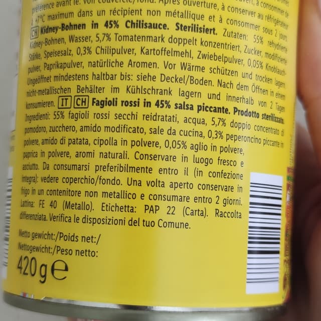 Fagioli rossi in salsa piccante, trovati durante la settimana messicana da Lidl. Ottimi per un burrito o in zuppa.