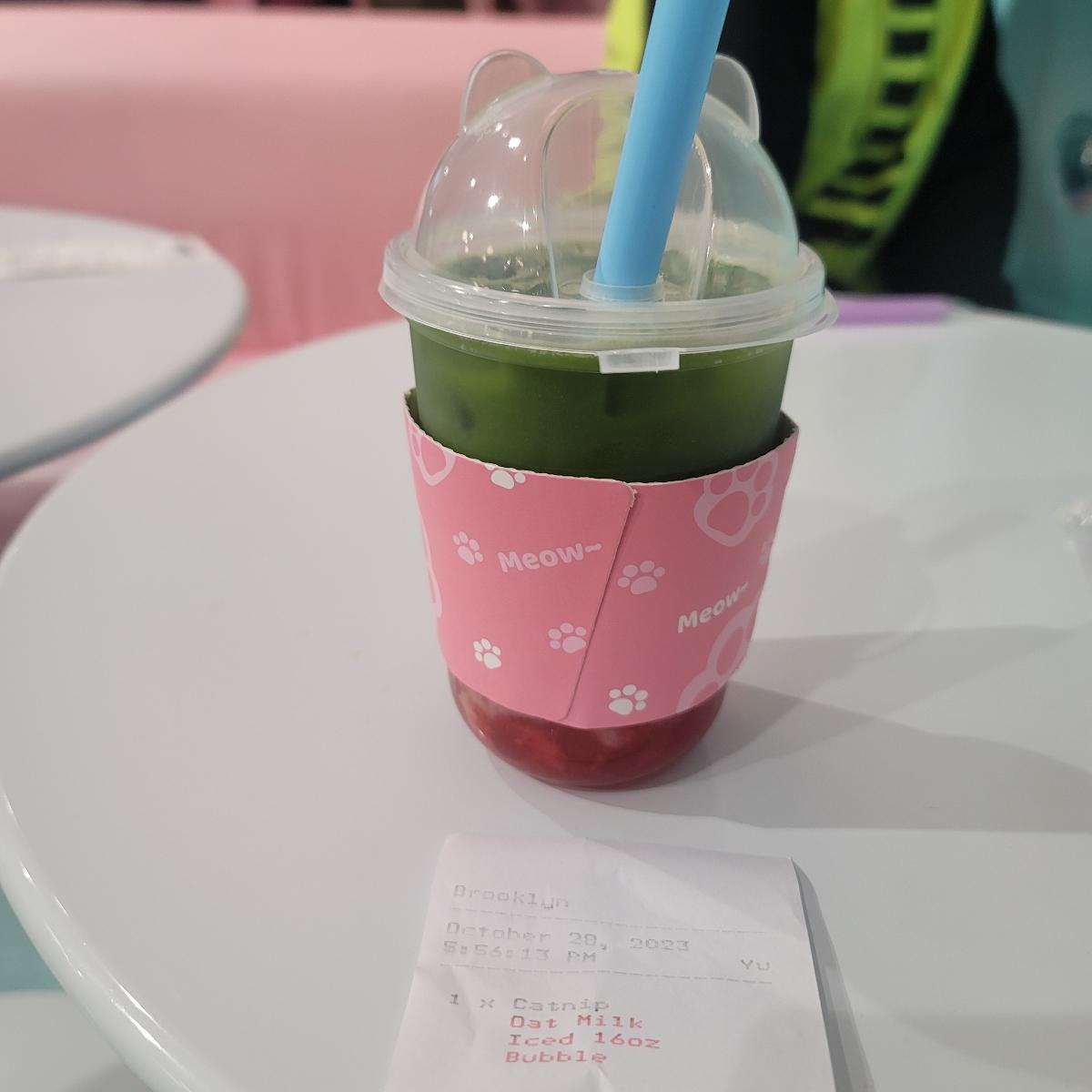It was alright. I would've preferred the drink be mixed together. The first 3 or 4 sips were just strong strawberry flavoring. After I shook it a bit, it tasted fine. I love the cat-themed, well, everything, but especially the cups.