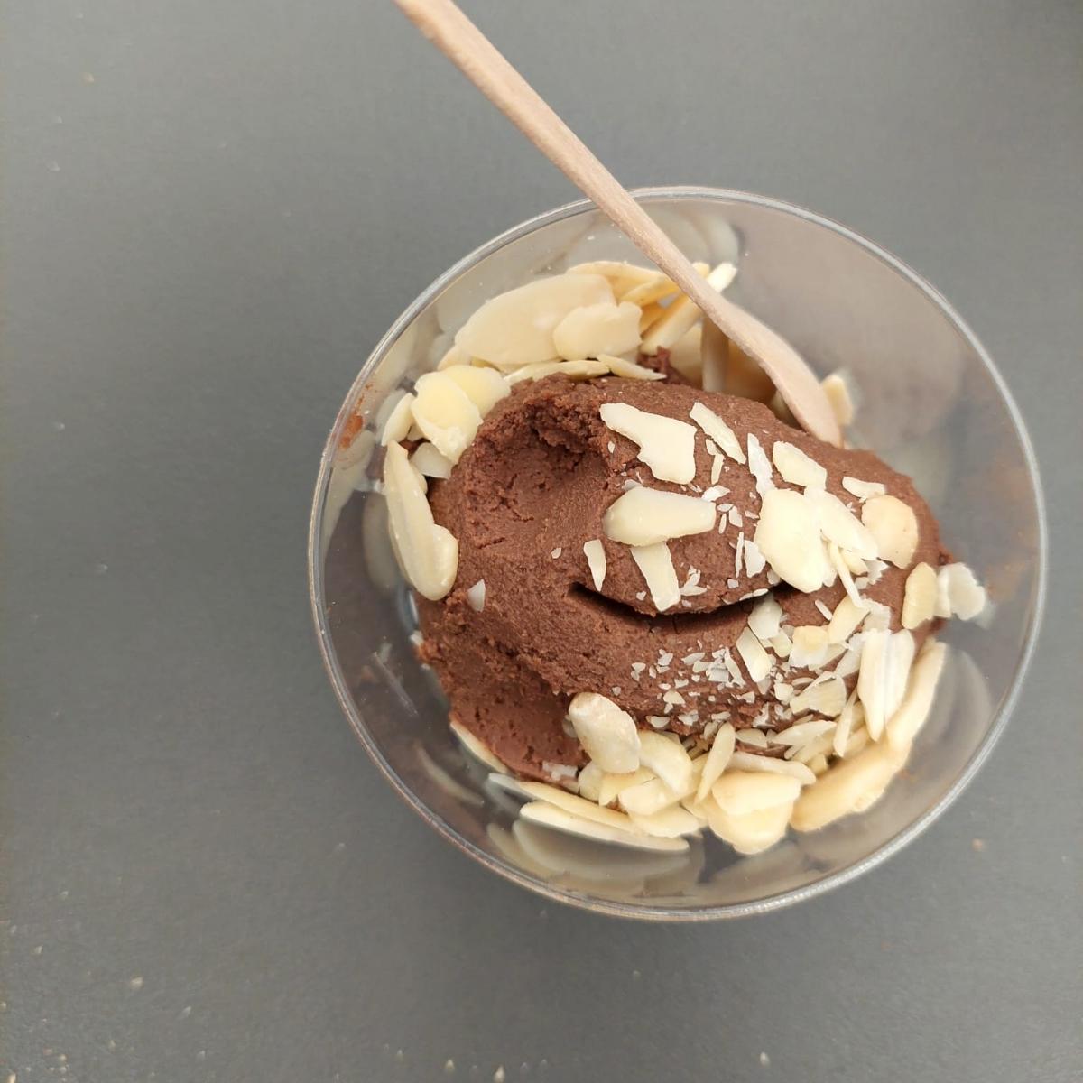 Hummus al cioccolato con lamelle di mandorle. Ho apprezzato l'originalità di questo dessert ma devo dire che non mi ha soddisfatta. L'hummus è risultato stopposo e dopo due cucchiani già mi sentivo piena.