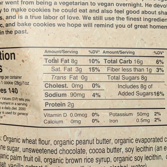 Didnt pay for this, dont know price. Typical empty calorie sweet snack i guess in that has nothing going for it other than taste. Difficult to eat only one but at 8g added sugar per tiny cookie I resist. At least it doesnt have mammalian fluid in it. Some ingredients are #organic .