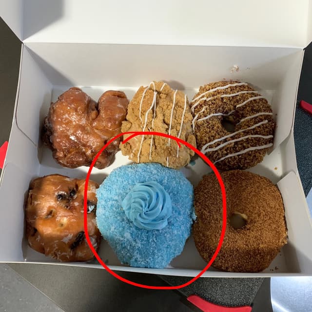 I think the daily donut selection is limited, but of the variety six-pack of donuts I had purchased, the fifth one I tried was the Cotton Candy donut. I’m not sure if this donut was considered a “fancy” or “gourmet” doughnut. According to my receipt, I purchased three of each. The total was $25.50 for the six.