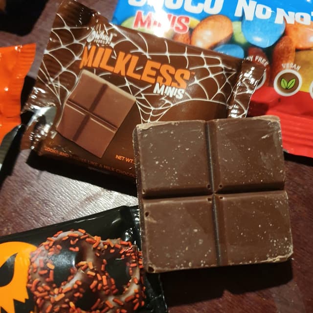 #veganisnotscary and I'm glad No Whey! Foods is proving that! It's 2023 and we have vegan milk chocolate Halloween candy with no scary ingredients! Everything by No Whey is vegan #glutenfree free from top allergens #kosher and made from natural ingredients