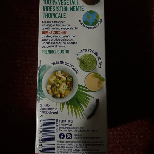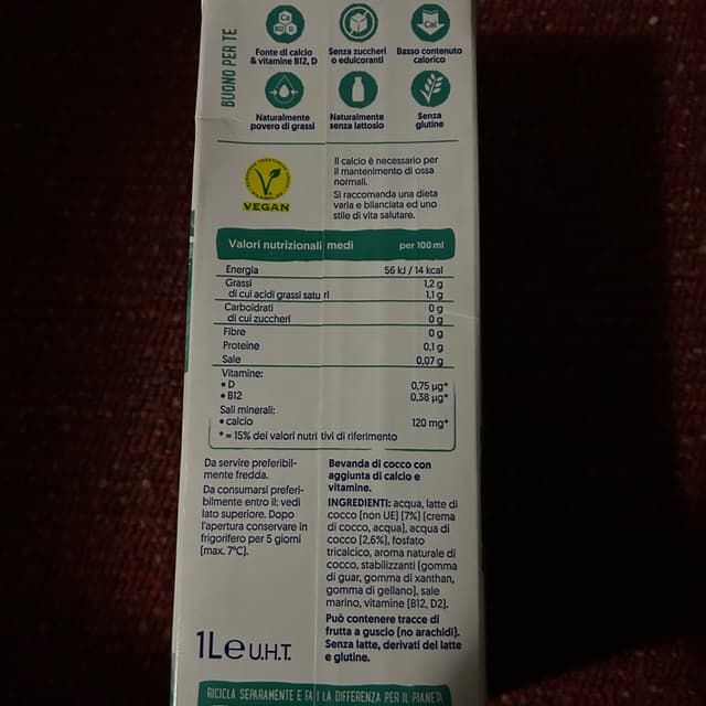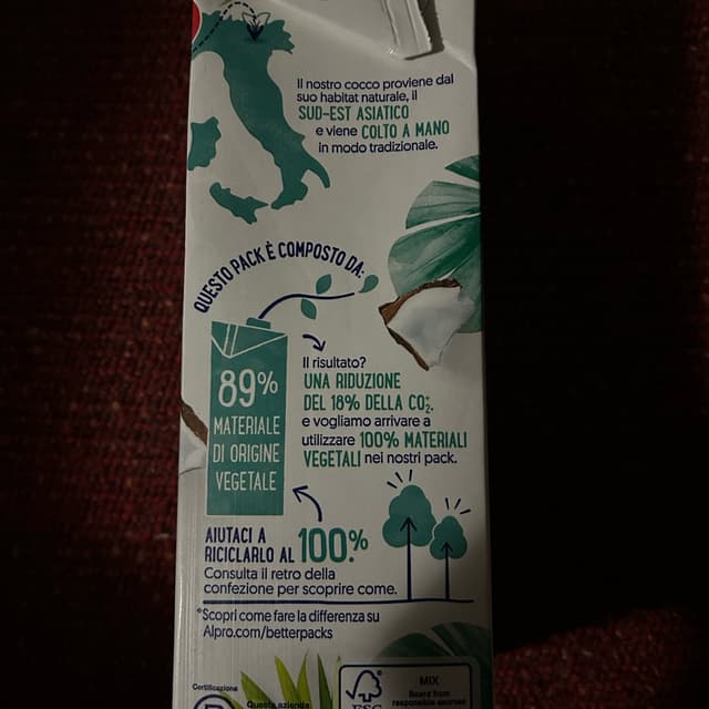 Buonissimo latte vegetale al cocco senza zuccheri trovato alla bennet di Brescia
