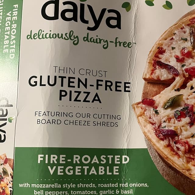 Overall I was impressed with the flavor. Happy to find gf and vegan. Crust was fine for gf—think and crisp. I prefer NY style or pan but with gf and frozen and vegan I can’t be picky! I liked this one better than the supreme. I only got these because they were BOGO so for that price worth it. I probably would not buy this unless on sale and just make my own pizza. I am excited to try Daiya’s new cheese recipe that they’ll be releasing soon that’s fermented traditionally or something. This came in typical cardboard box with plastic wrapper. Would love a plastic free alternative