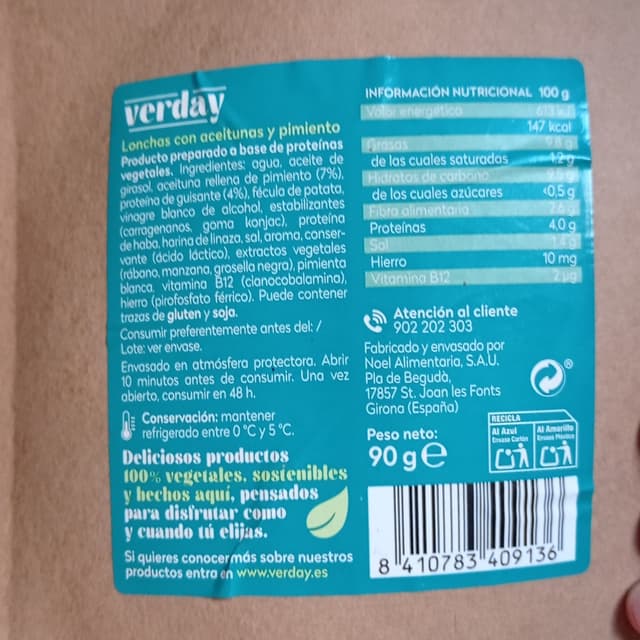 Lonchas vegetales con aceitunas. Están bien de sabor. Un paquete cuesta poco más de un euro y medio. Vienen seis lonchas. Las he comprado en el supermercado bon preu.