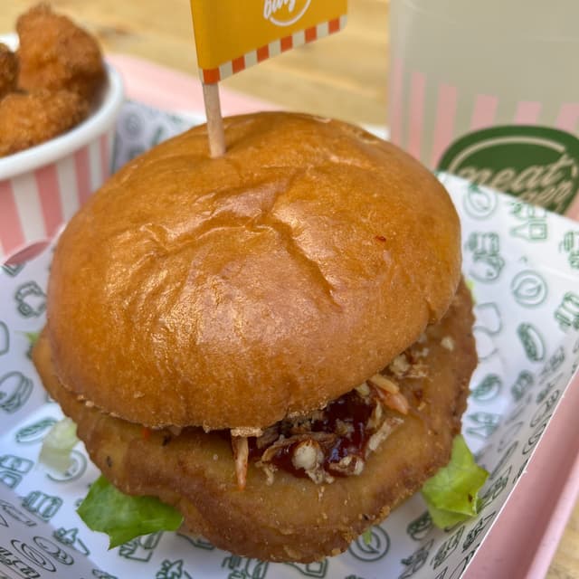 🇰🇷 🤩This is a limited edition “punchy and crunchy gochujang 🍔burger with a Tindle patty, crunchy 🥬lettuce, spicy kimchi, crispy 🧅onions, and kimchi mayo.” £1 from every burger sold goes to Made in Hackney, a charity 🎗️and community 👩🍳kitchen. This is my favorite of all their burgers so far. It’s a special for world vegan 🌱month. It was so messy but really delicious. £9.75 #veganisnotscary #kimchi #allveganrestaurant #burger #veganburger