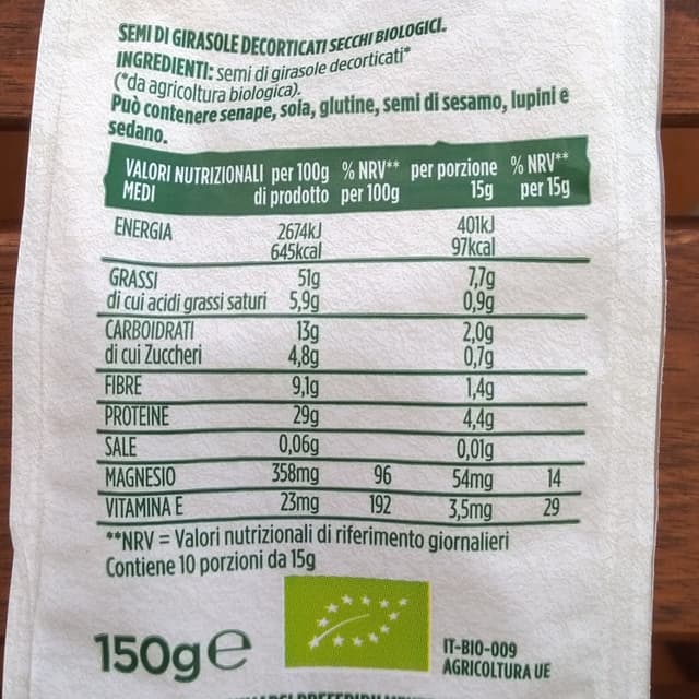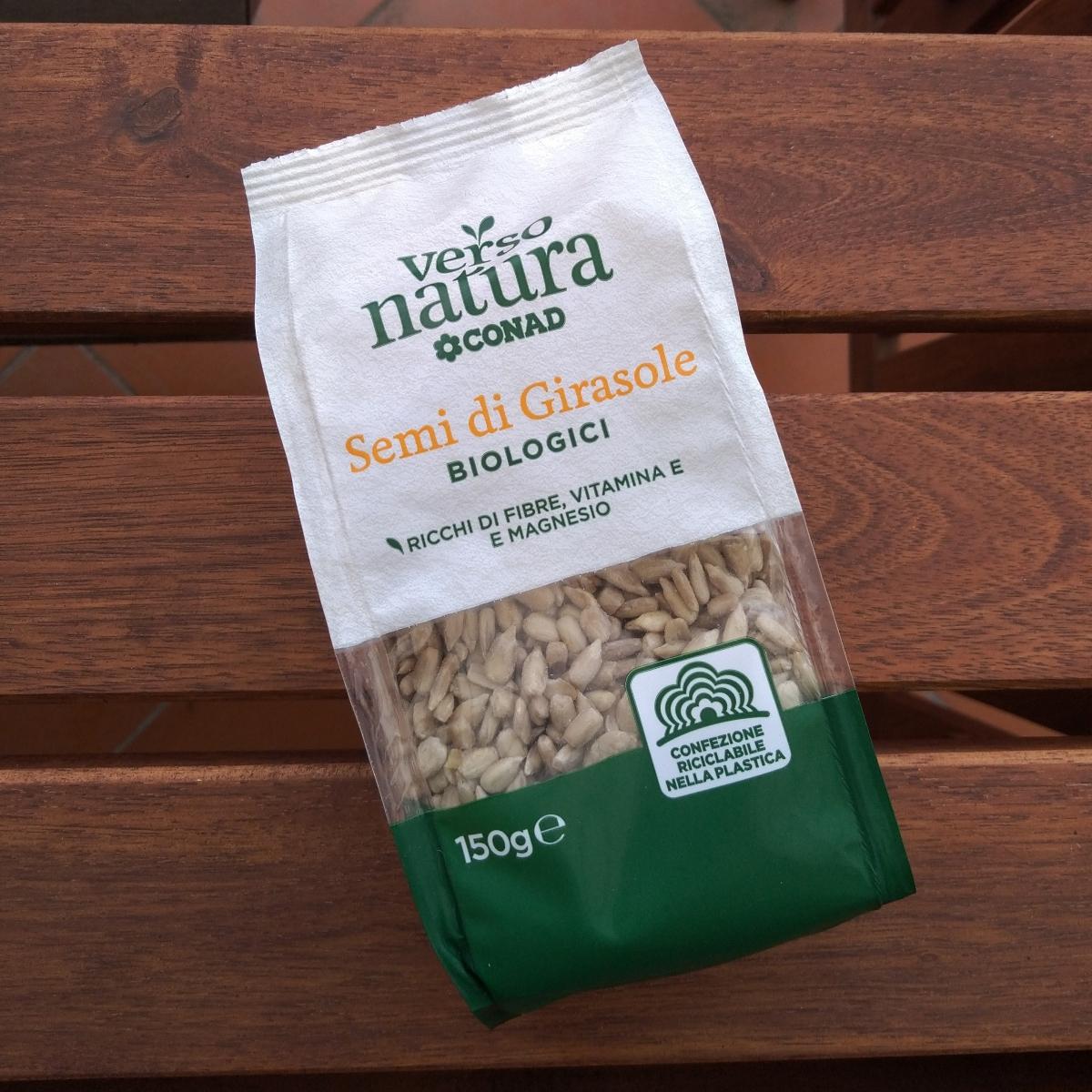 Ultimamente sto aggiungendo i semi di girasole un po' in ogni piatto, sia dolce che salato. Questi bio di Conad li trovo molto buoni, sempre freschi e gustosi. Sono prodotti per Conad da Colfiorito.