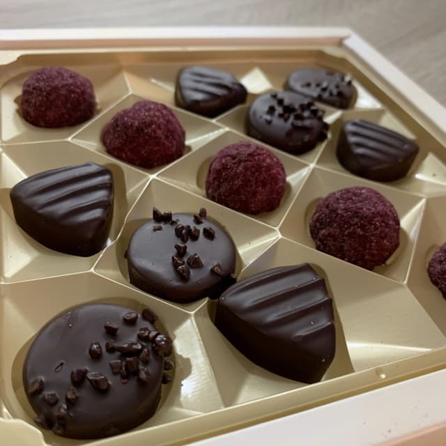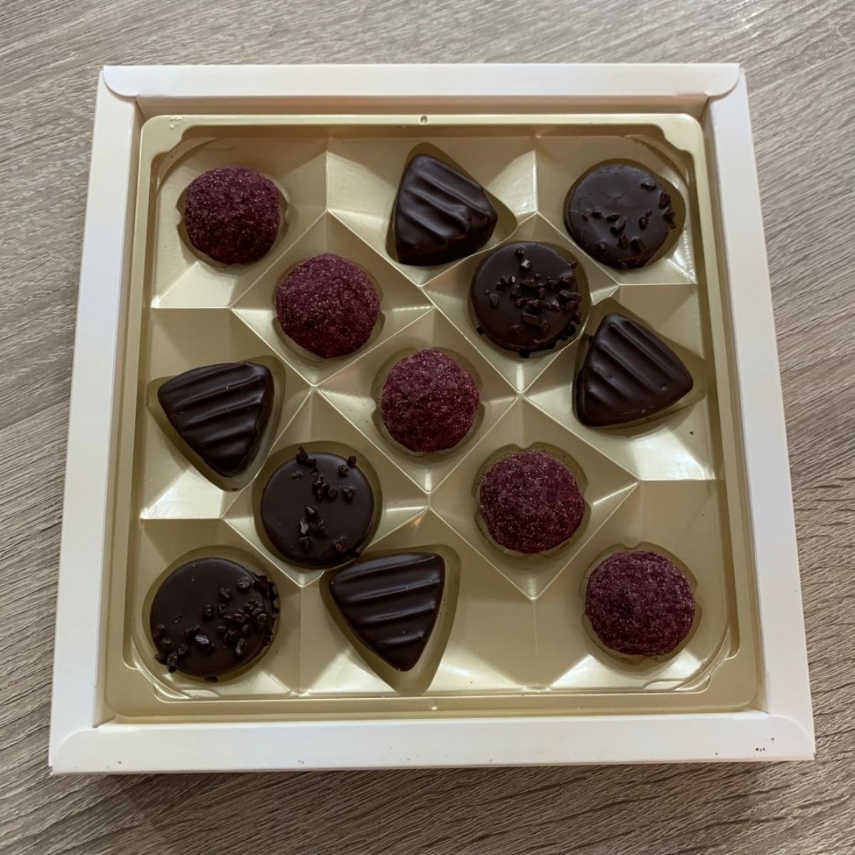 Le regalĂ© estos bombones a mi hermana en su Ășltimo dĂa de trabajo de verano. Me encanta que existan estos bombones veganos porque asĂ se puede regalar un detalle bonito.