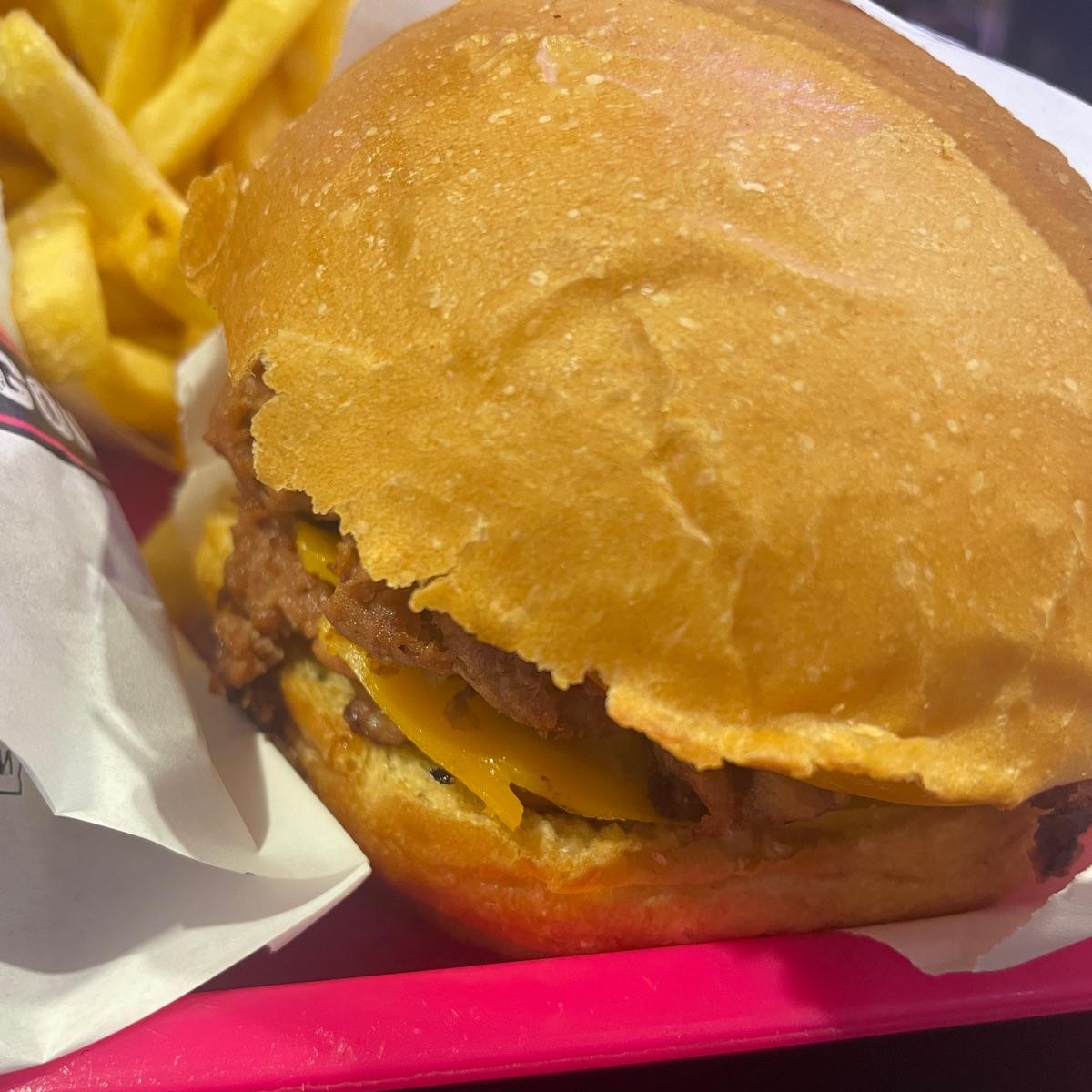 Rica pero me faltó un poco de sabor. Mucha hamburguesa, rica pero ahí, el queso llegó un poco frío…